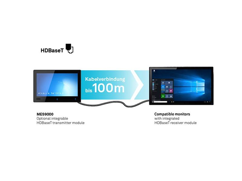 Grazie al modulo trasmettitore HDBaseT integrato opzionale che consente di trasmettere lo schermo (immagine, suono, controllo touch) fino a 100 m tramite un unico cavo. La soluzione ideale per ambienti applicativi remoti in combinazione con i monitor industriali di ADS-TEC come la serie OPD o MMD.