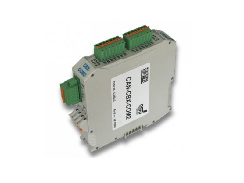 CAN-CBX-COM2 comprende due porte seriali RS232 oppure una porta RS232 ed una RS485 con parametri completamente configurabili. Il modulo appartiene alla serie I/O CBX ed è quindi integrabile con gli altri moduli CBX attraverso lo standard InRailBus.