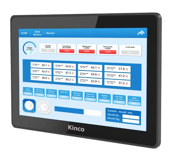 Come tutti i pannelli Kinco, può essere collegato a qualsiasi PLC in commercio. I protocolli Modbus (TCP/RTU), VNC, OPC UA server, FTP, sono integrati, così come la possibilità di visualizzare PDF.