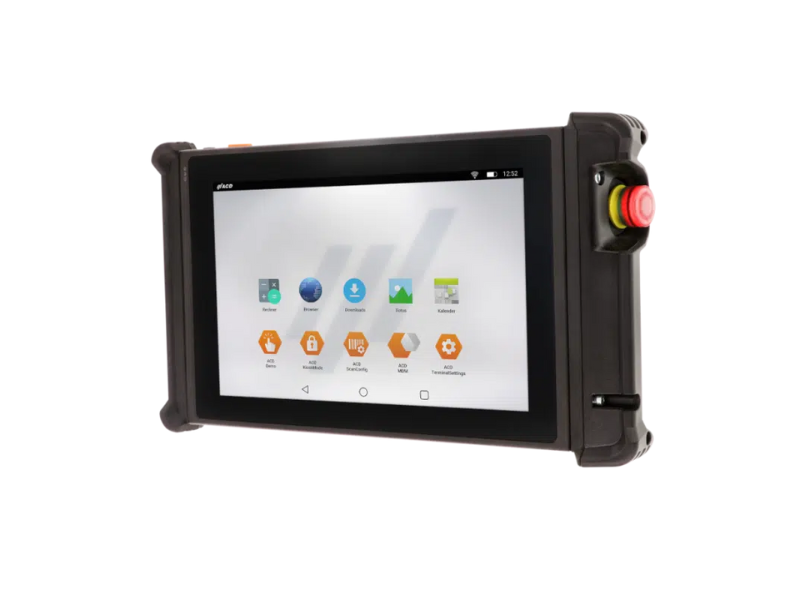 La trasmissione "funzionalmente sicura" tramite Bluetooth garantisce il rispetto dei requisiti di sicurezza industriale, mentre i dati operativi non di sicurezza vengono gestiti tramite WLAN. L'ambiente Android™ Industrial+ e le App di parametrizzazione consentono un controllo intuitivo e affidabile.